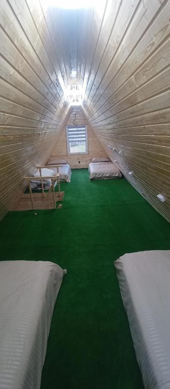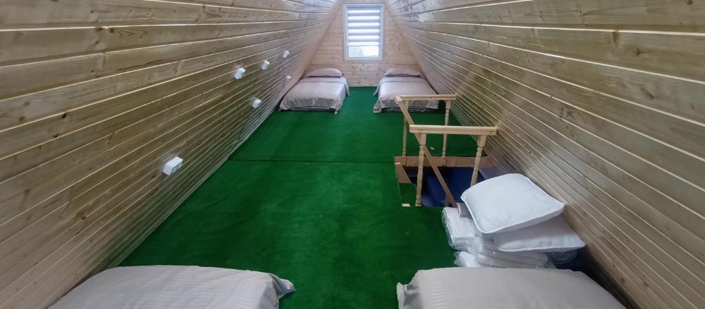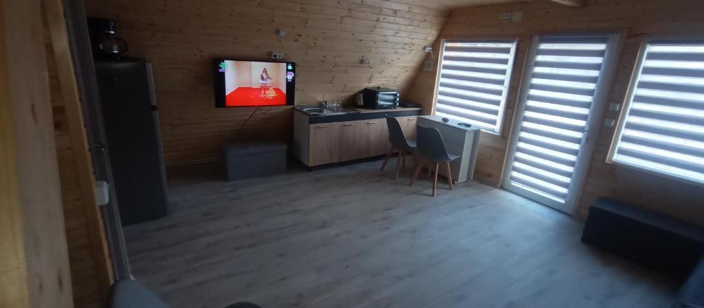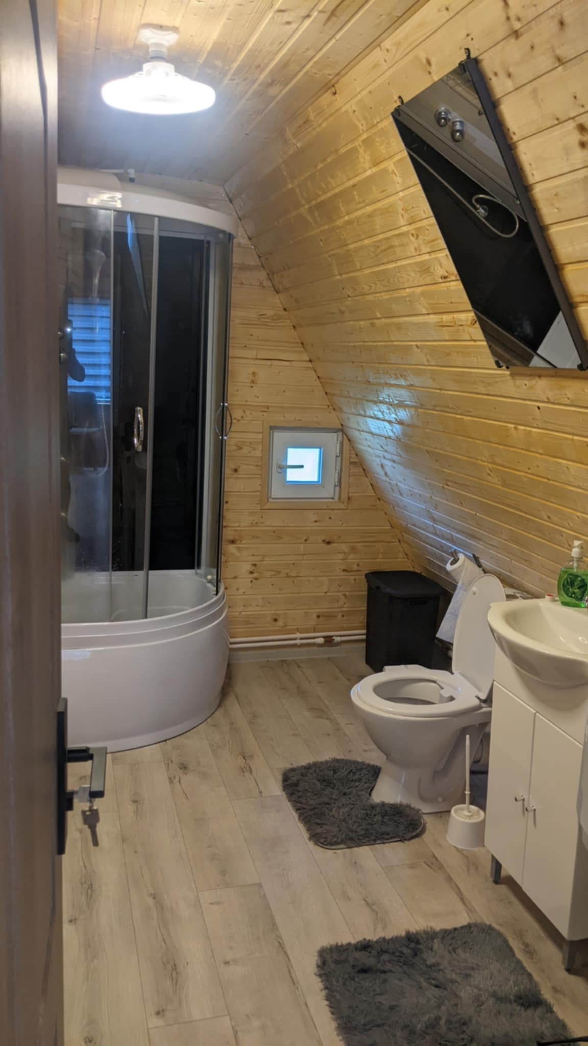În interior, casa este dotată cu 1 dormitor cu pat dublu, 4 paturi de o persoana la etaj,(pot fi atasate una de alta), si o canapea extensibila in living, un living spațios și un televizor cu ecran plat. Mini bucătăria este complet utilată, având frigider,cuptor si plita pe inductie iar baia e echipat cu duș cu masaj, masina de spalat rufe și articole de toaletă gratuite.